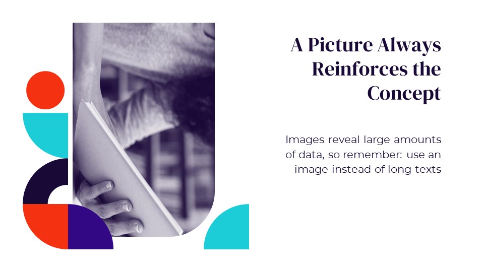 Review your favourite book with this geometric template. It is simple, modern and white, and we have added circular and semicircular patterns in light, navy and royal blue and in red.