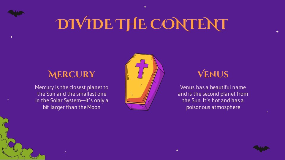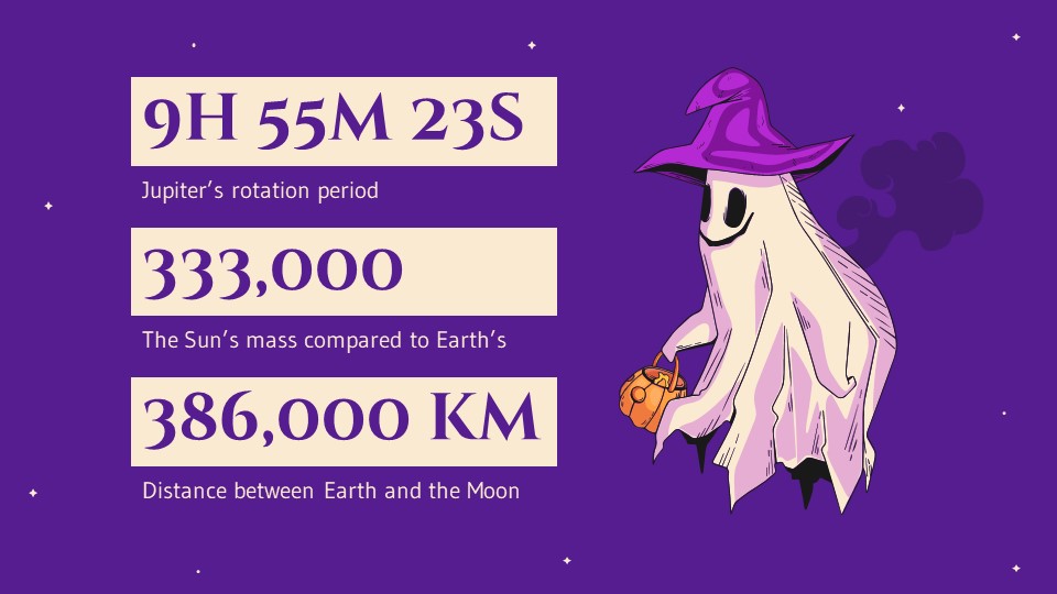If you want to celebrate Halloween with a highly creative template. The slideshow on a purple background is decorated with illustrations of classic Halloween pumpkins and other elements of this grand celebration. What are you waiting for to make a presentation on any aspect of this holiday you want? This template provides you with all the resources!