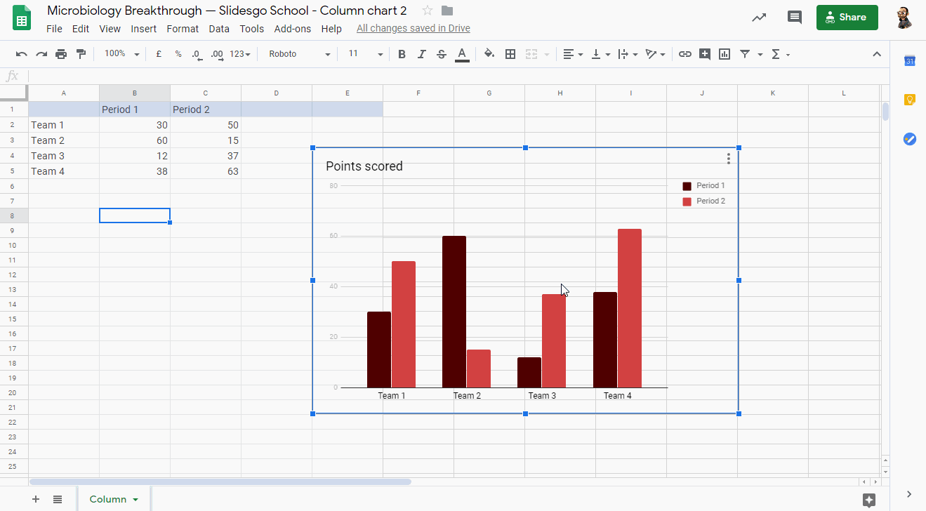 - Once you’re done modifying the chart, copy it by pressing Ctrl/Cmd + C, go back to Google Slides and paste it.